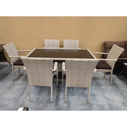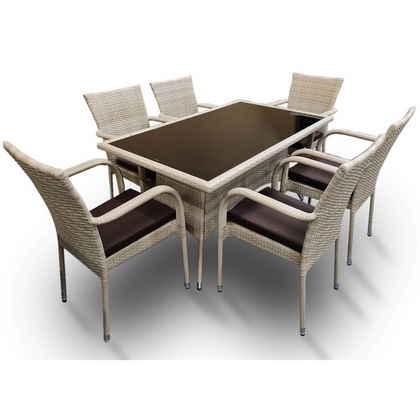 Обеденная группа из искусственного ротанга Руардин и 6 кресел Милан (wood)