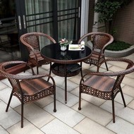 Столешница из закаленного стекла толщиной 5 мм с обрамлением из искусственного ротанга по краю.