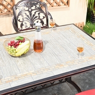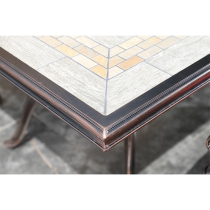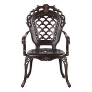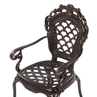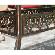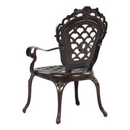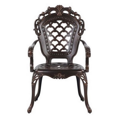 Обеденный комплект из литого алюминия состоит из стола и восьми кресел с подлокотниками.
