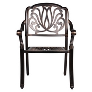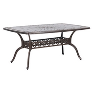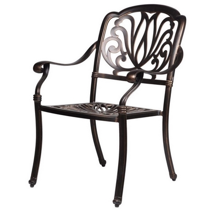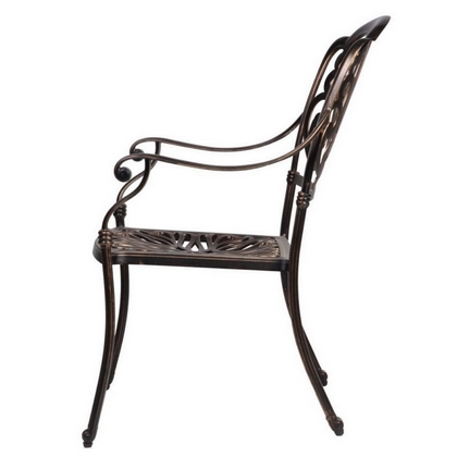 Обеденный комплект из литого алюминия состоит из стола и шести кресел с подлокотниками.
