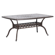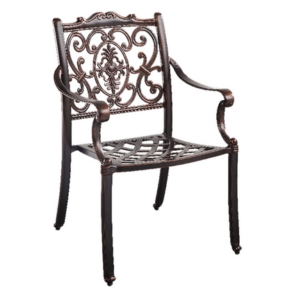 Обеденный комплект из литого алюминия состоит из стола и шести кресел с подлокотниками.