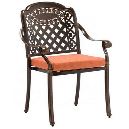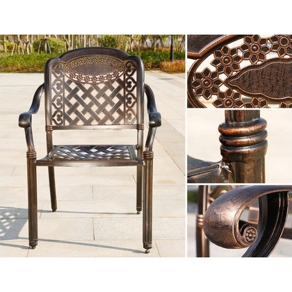 Обеденный комплект из литого алюминия состоит из стола и шести кресел с подлокотниками.