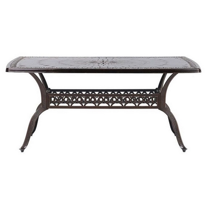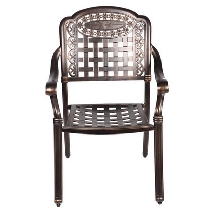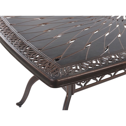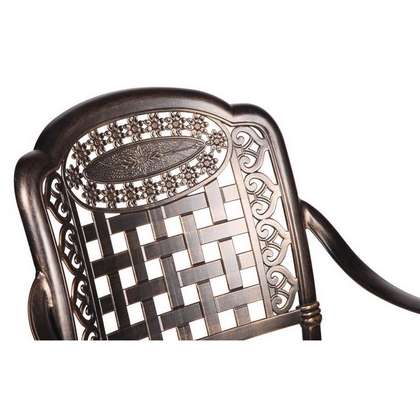 Обеденный комплект из литого алюминия состоит из стола и шести кресел с подлокотниками.