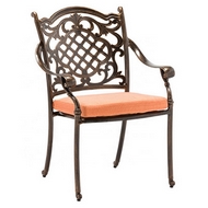 Обеденный комплект из литого алюминия состоит из стола, четырех кресел с подлокотниками и двух вращающихся кресел.