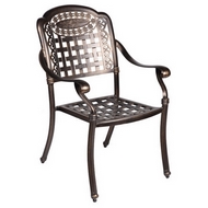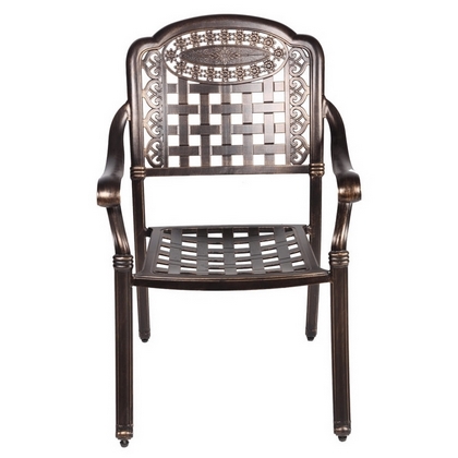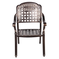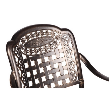 Обеденный комплект из литого алюминия состоит из стола и восьми кресел с подлокотниками.