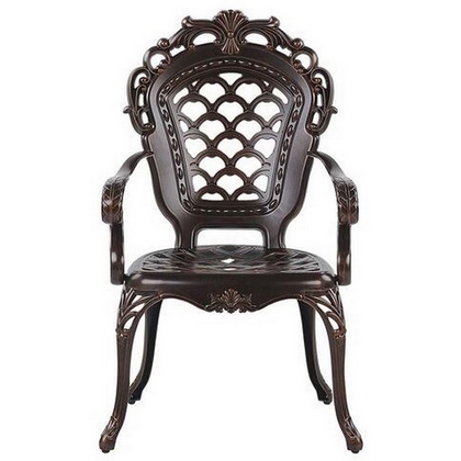 Обеденный комплект из литого алюминия состоит из стола и четырех кресел с подлокотниками.