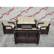 Размеры в упаковке:стол - 78х58х20 см, диван трёхместный - 118х80х36 см, диван двухместный - 118х70х36 см, кресло - 118х80х36 см.