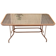 Обеденный алюминиевый комплект из искусственного ротанга состоит из прямоугольного стола и шести кресел.