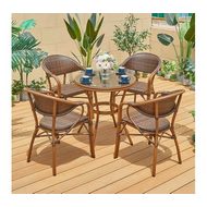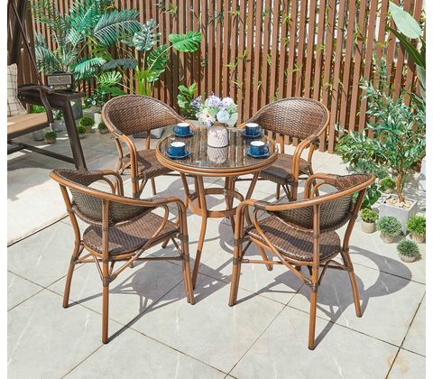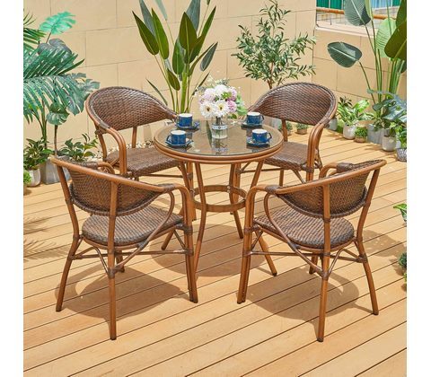 Алюминиевый комплект из искусственного ротанга состоит из стола и 4-х кресел.