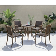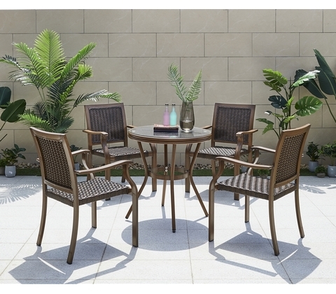 Алюминиевый комплект из искусственного ротанга состоит из стола и 4-х кресел.