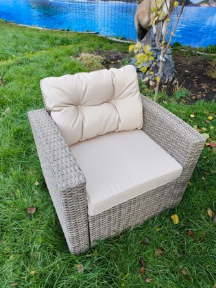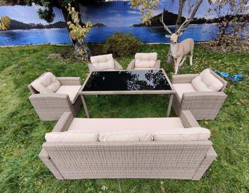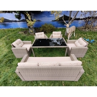 Обеденный комплект из искусственного ротанга Сантьяго (стол, диван, 4 кресла) Greige