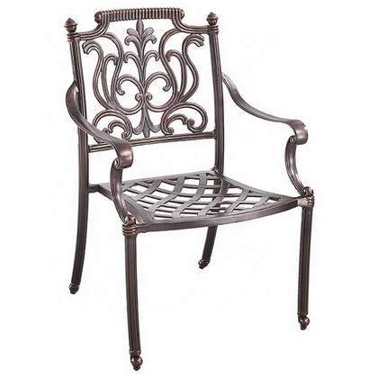 Обеденный комплект из литого алюминия состоит из стола и шести кресел с подлокотниками.