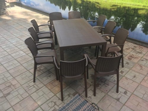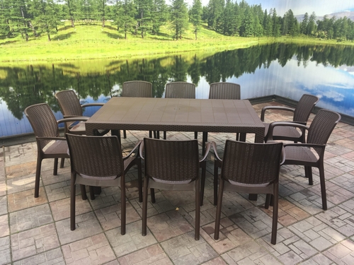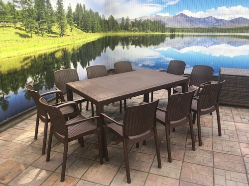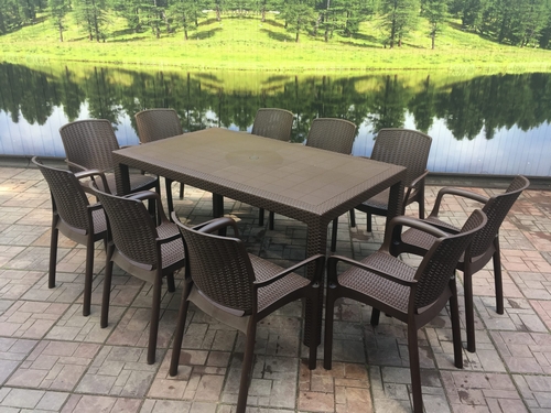 Обеденный комплект коричневый под искусственный ротанг - состоит из стола Невада МАКСИ и 10 кресел Невада.