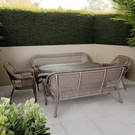 Обеденный комплект садовой мебели из искусственного ротанга Мэдисон овальный стол два 3-х местных дивана 2 кресла без подушек