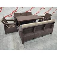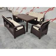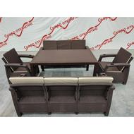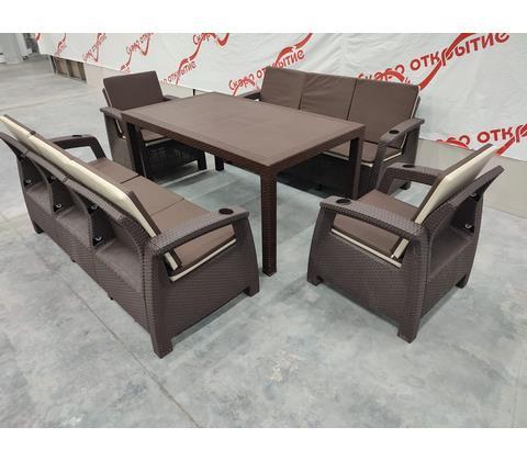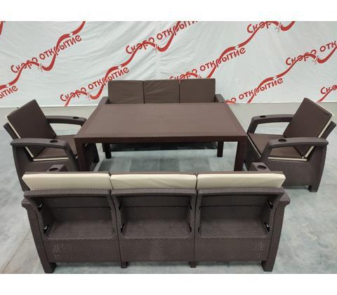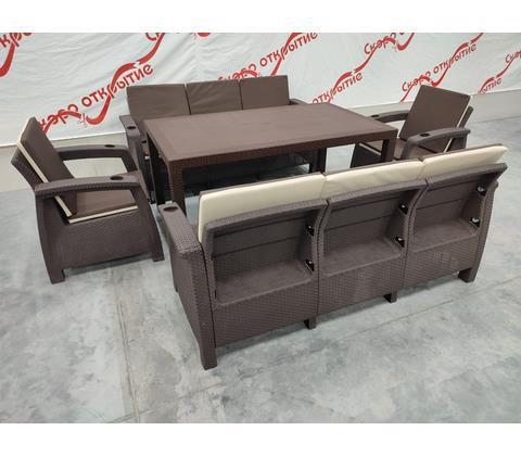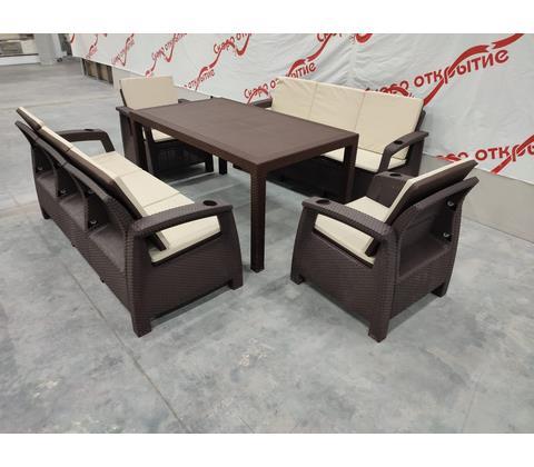 Обеденный комплект под иск.ротанг Yalta Family Maxi Set (бежевый/коричневый) с подушками на спинку