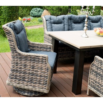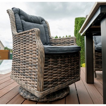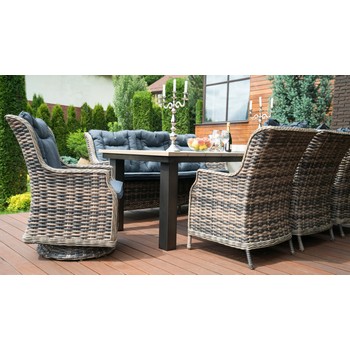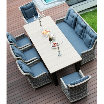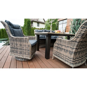 Набор мебели рассчитан на использование на открытом воздухе и превосходно подходит для дачи и в загородного дома.
