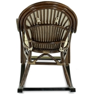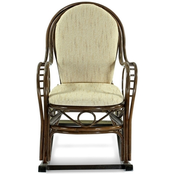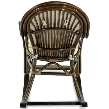 Материалы изделия: каркас - натуральный ротанг, полозья - массив дерева махагони, подушка - ткань рогожка с мягким наполнителем.
