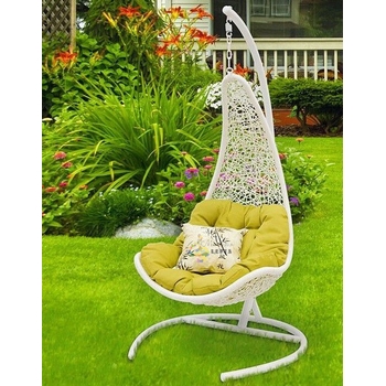 Цветовое исполнение: стойка - белая, плетённая корзина - белая, подушка - светло-зелёная.