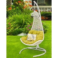 Материалы изделия: стойка - сталь с порошковым защитным покрытием, корзина - стальной каркас оплетённый круглым искусственным ротангом, подушка - хлопок/полиэстер с мягким наполнителем.