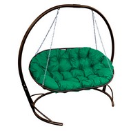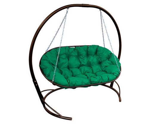 Подвесное кресло-диван Мамасан со стойкой (коричневое с зеленой подушкой)