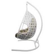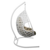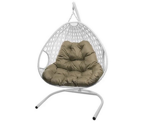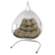 Подвесное кресло ДЛЯ ДВОИХ ЛЮКС с ротангом (белое, бежевая подушка)