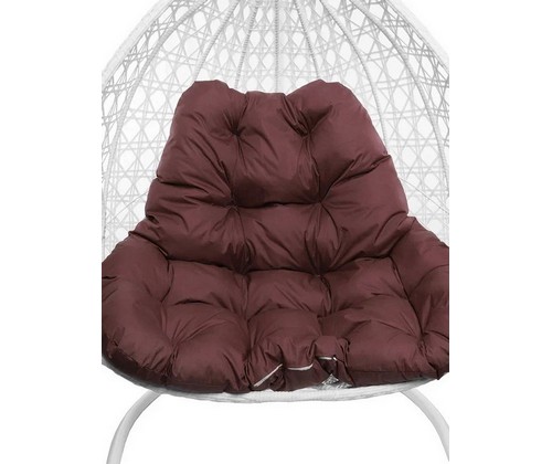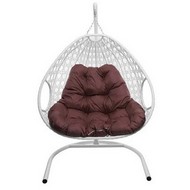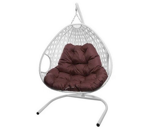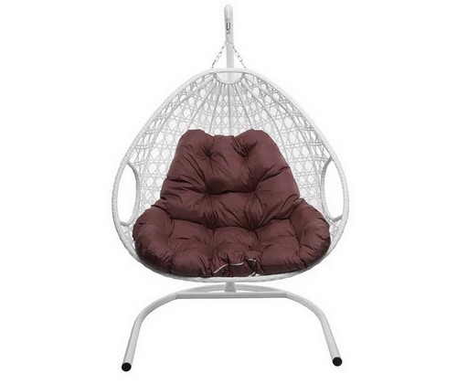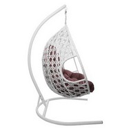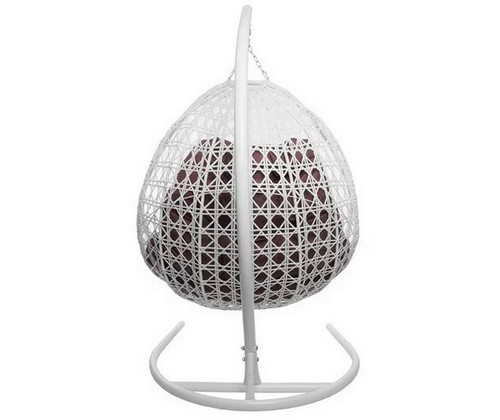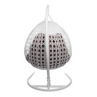 Подвесное кресло ДЛЯ ДВОИХ ЛЮКС с ротангом (белое, бордовая подушка)