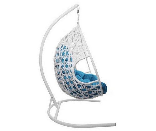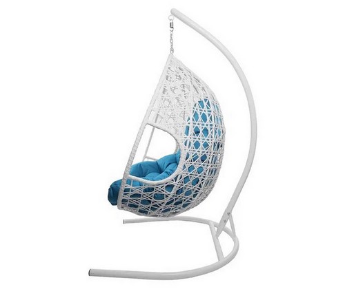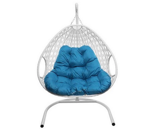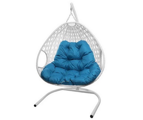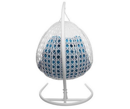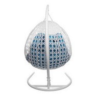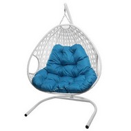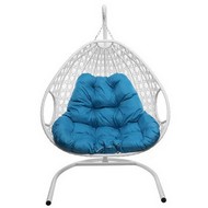 Подвесное кресло ДЛЯ ДВОИХ ЛЮКС с ротангом (белое, голубая подушка)