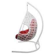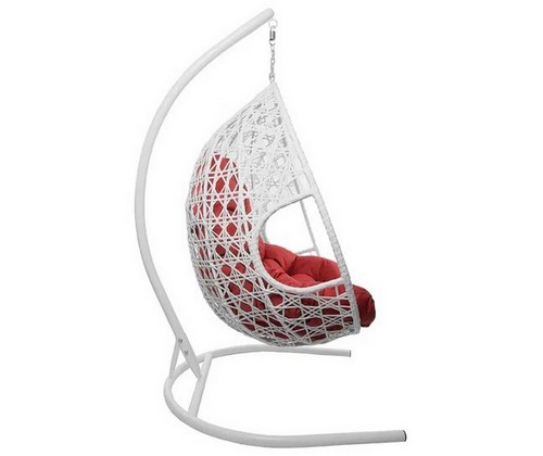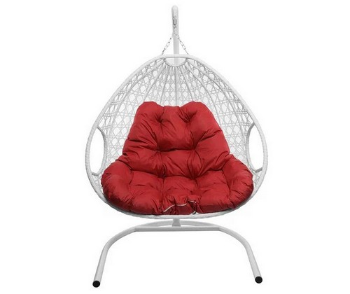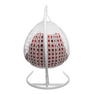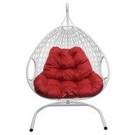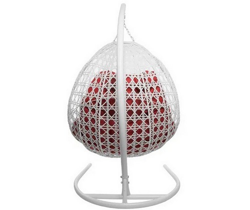 Подвесное кресло ДЛЯ ДВОИХ ЛЮКС с ротангом (белое, красная подушка)