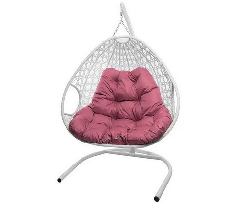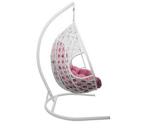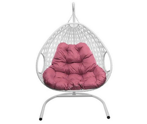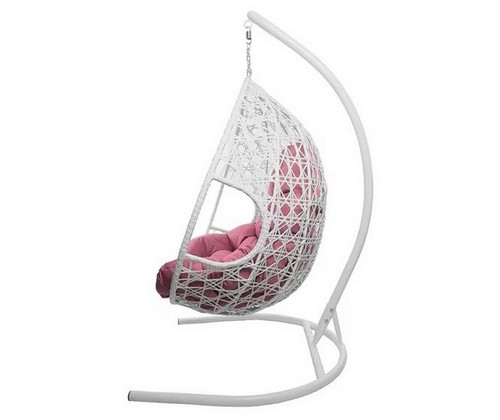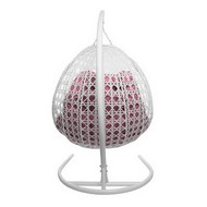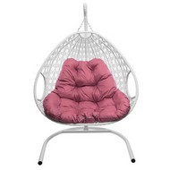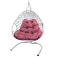 Подвесное кресло ДЛЯ ДВОИХ ЛЮКС с ротангом (белое, розовая подушка)