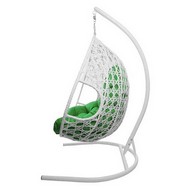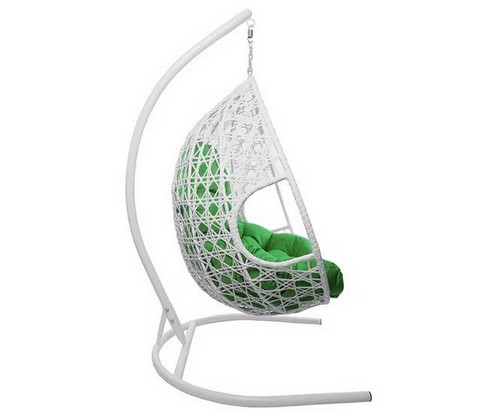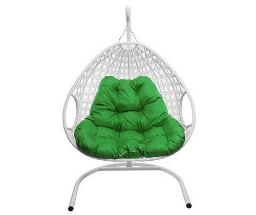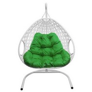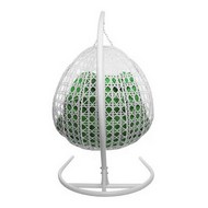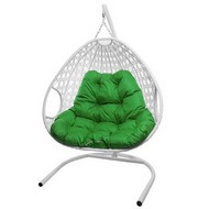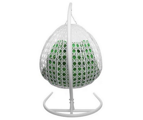 Подвесное кресло ДЛЯ ДВОИХ ЛЮКС с ротангом (белое, зелёная подушка)