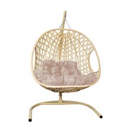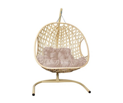 Подвесное кресло ДЛЯ ДВОИХ Люкс с ротангом (бежевое с бежевой подушкой)