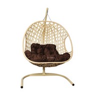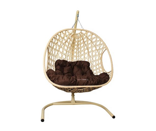 Подвесное кресло ДЛЯ ДВОИХ Люкс с ротангом (бежевое с коричневой подушкой)