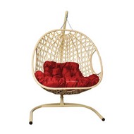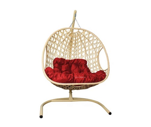 Подвесное кресло ДЛЯ ДВОИХ Люкс с ротангом (бежевое с красной подушкой)