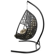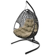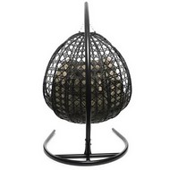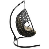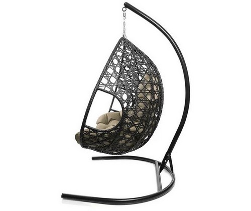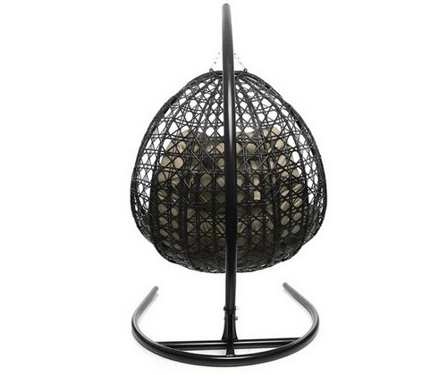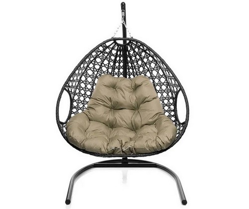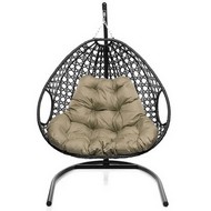 Подвесное кресло ДЛЯ ДВОИХ ЛЮКС с ротангом (чёрное, бежевая подушка)