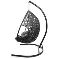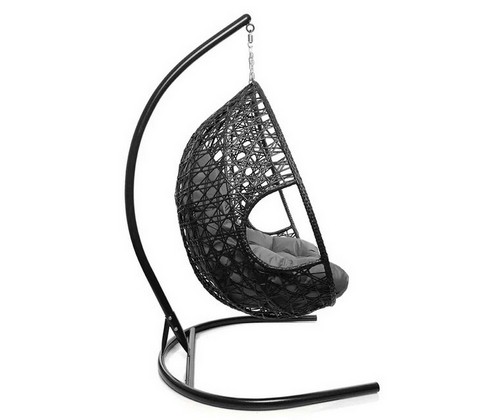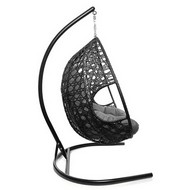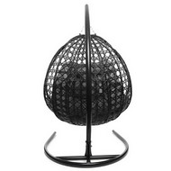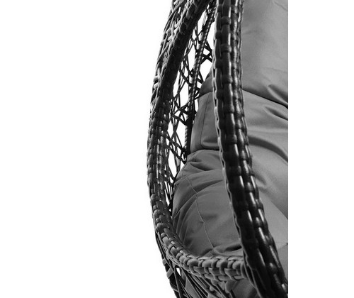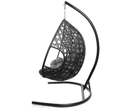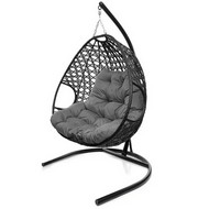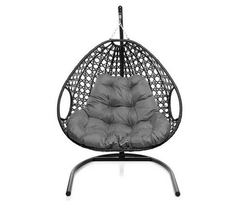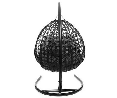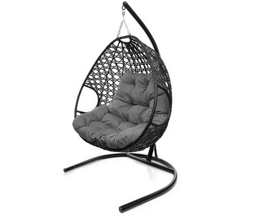 Подвесное кресло ДЛЯ ДВОИХ ЛЮКС с ротангом (чёрное, серая подушка)