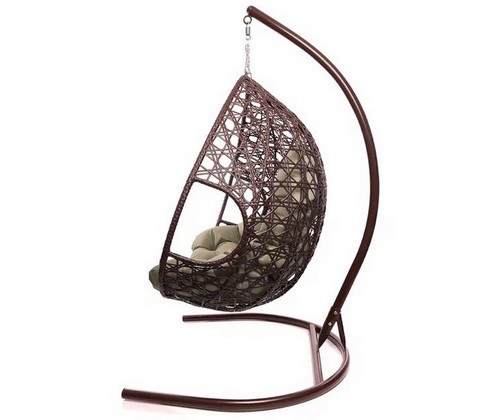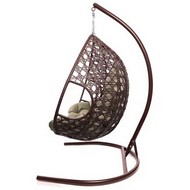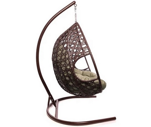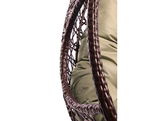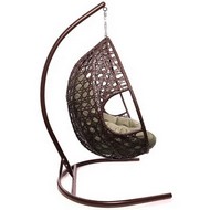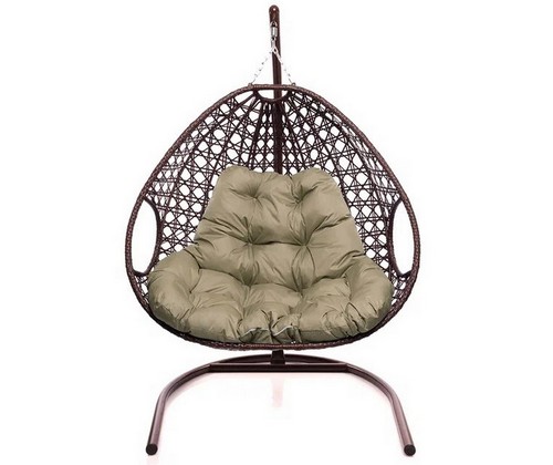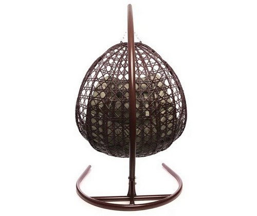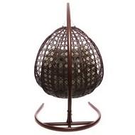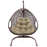 Подвесное кресло ДЛЯ ДВОИХ ЛЮКС с ротангом (коричневое, бежевая подушка)