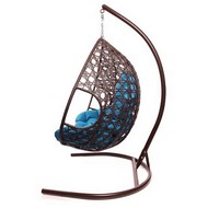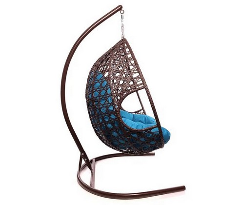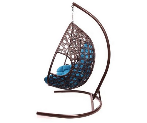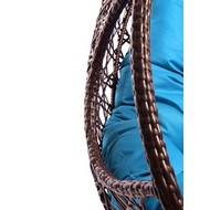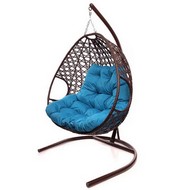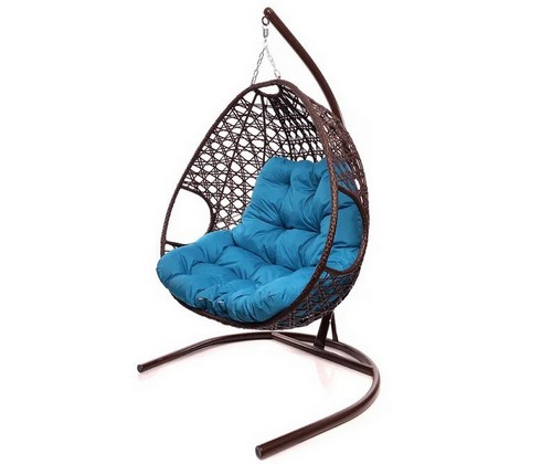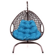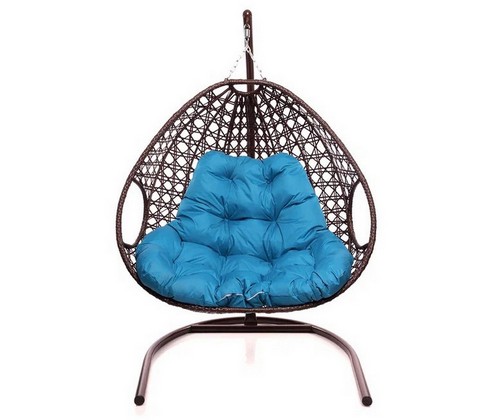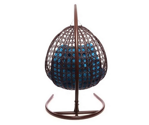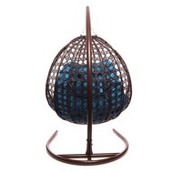 Подвесное кресло ДЛЯ ДВОИХ ЛЮКС с ротангом (коричневое, голубая подушка)