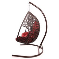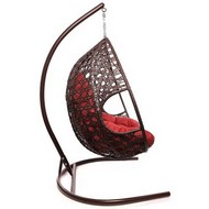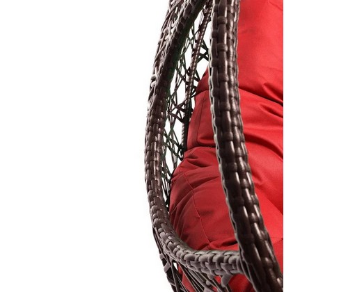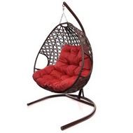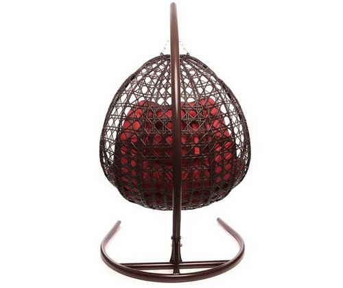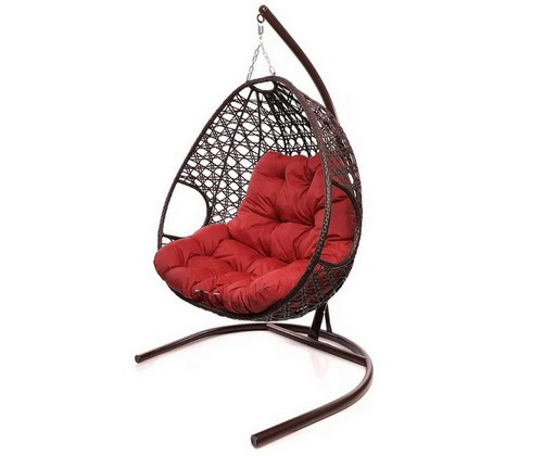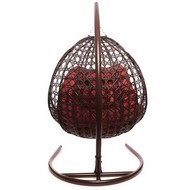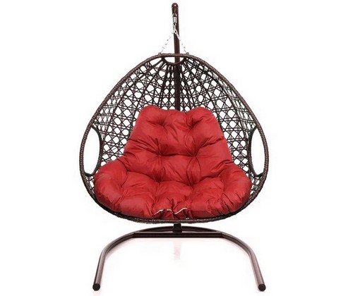 Подвесное кресло ДЛЯ ДВОИХ ЛЮКС с ротангом (коричневое, красная подушка)