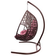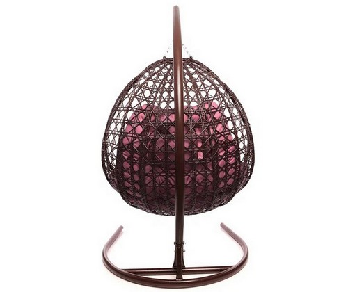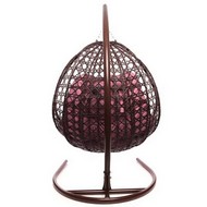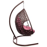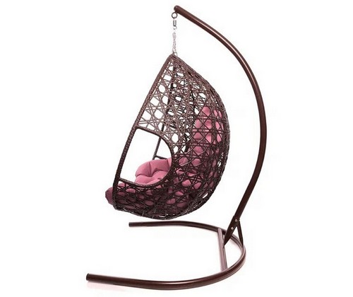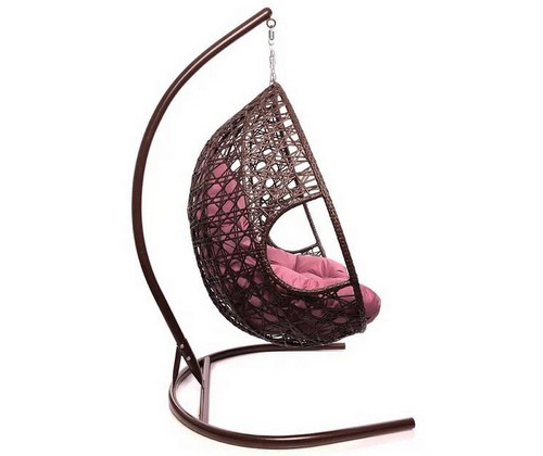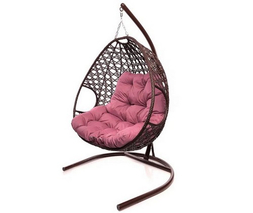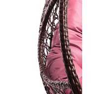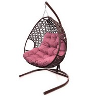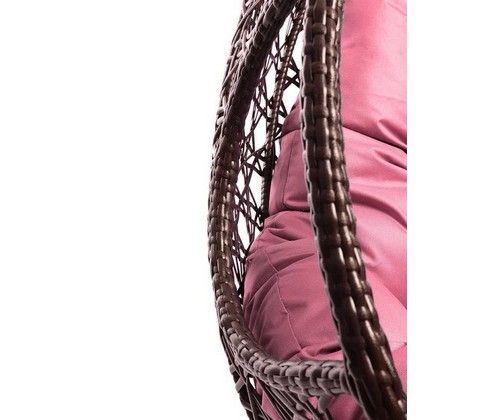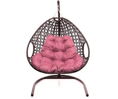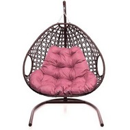 Подвесное кресло ДЛЯ ДВОИХ ЛЮКС с ротангом (коричневое, розовая подушка)