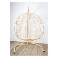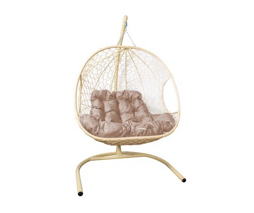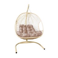 Подвесное кресло ДЛЯ ДВОИХ с ротангом (бежевое с бежевой подушкой)
