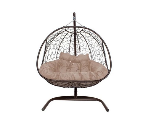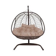 Подвесное кресло ДОБРЫНЯ с ротангом (коричневый с бежевой подушкой)