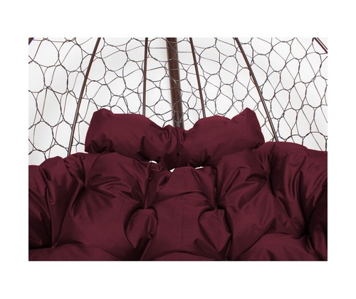 Подвесное кресло ДОБРЫНЯ с ротангом (коричневый с бордовой подушкой)