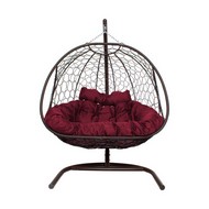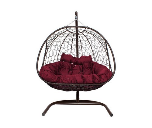 Подвесное кресло ДОБРЫНЯ с ротангом (коричневый с бордовой подушкой).