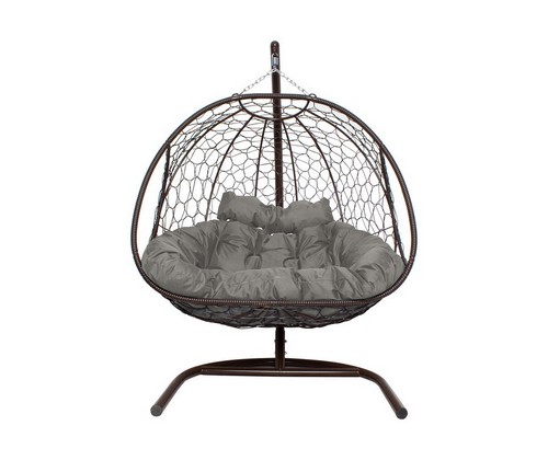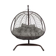 Подвесное кресло ДОБРЫНЯ с ротангом (коричневый с серой подушкой)