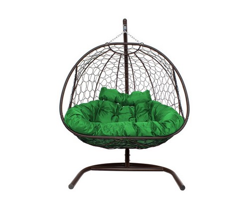 Подвесное кресло ДОБРЫНЯ с ротангом (коричневый с зеленой подушкой)