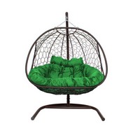 Подвесное кресло ДОБРЫНЯ с ротангом (коричневый с зеленой подушкой).