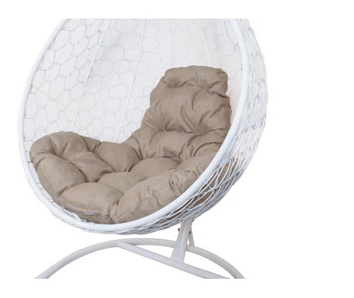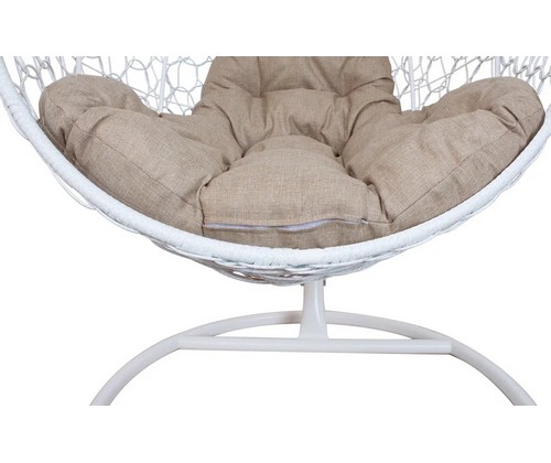 Подвесное кресло Капля Home с ротангом (белое, подушка Лен)