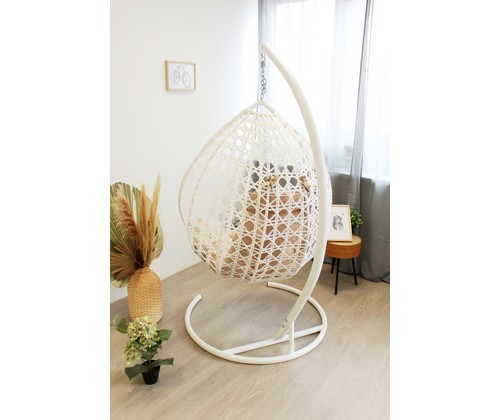 Подвесное кресло Капля Люкс (белое с бордовой подушкой)