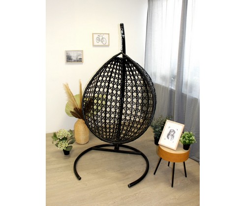 Подвесное кресло Капля Люкс (черное с зеленой подушкой)