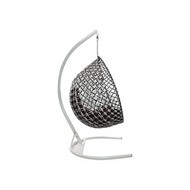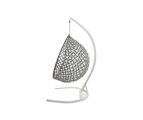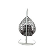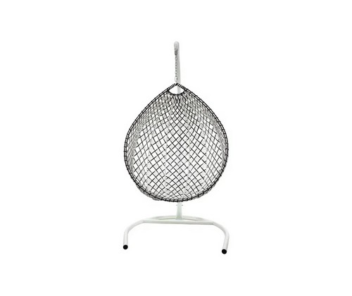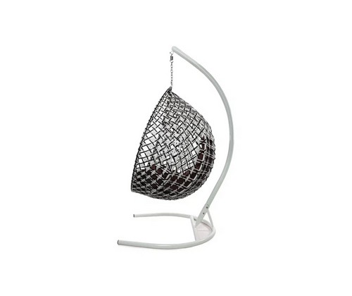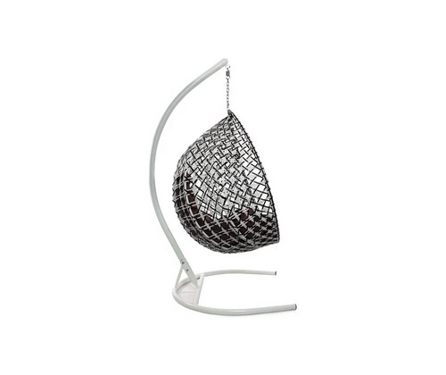 Подвесное кресло Капля Люкс двуцветное с ротангом (белое/черное с коричневой подушкой)